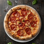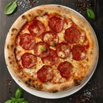 San Marzano tomaten , Fior di Latte Mozzarella, Chorizo, Prosicutto, Pancetta, Zure room, Paprika
