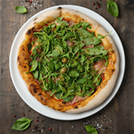 San Marzano tomaten , Fior di Latte Mozzarella, Prosciutto, Rucola, Pesto Genovese