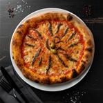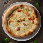 San Marzano tomaten , Fior di Latte Mozzarella, Ansjovis, Olijven, Oregano