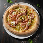 Witte saus, Fior di Latte Mozzarella, Mortadella, Pesto Genovese, Pistachenoten, Ricotta