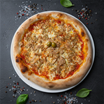San Marzano tomaten, Fior di Latte Mozzarella, Tonijn, Ui