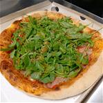San Marzano tomaten , Fior di Latte Mozzarella, Prosciutto, Rucola, Pesto Genovese
