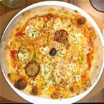 San Marzanno tomaten, Fior di Latte Mozzarella, Kip, Gorgonzola, Paprika, Grana Padano, Olijven