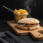 Rundvlees,Sla, Tomaat, Zure augurk, Cheddar, Saus, Friet