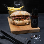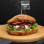 Rundvlees, Rucola, Geitenkaas, Gekarameliseerde Uien, Bacon, Mayonaise